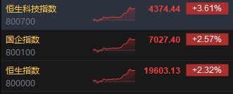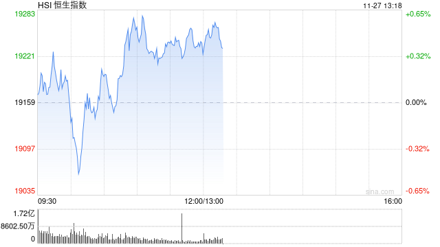 11月27日消息,今日港股三大指数午后持续冲高,截至收盘,恒生指数涨2.32%,报19603.13点,恒生科技指数涨3.61%,国企指数涨2.57%。盘面上,科网股集体高涨,美团涨超7%领衔,京东涨超5%,小米涨超4%;半导体概念股涨幅居前,华虹半导体涨超5%;中资券商股集体走强,招商证券(600999)涨7%;风电股齐涨,金风科技(002202)涨超9%;生物技术、乳制品、SaaS、家电等板块纷纷上涨。