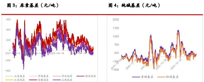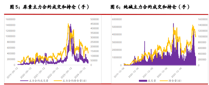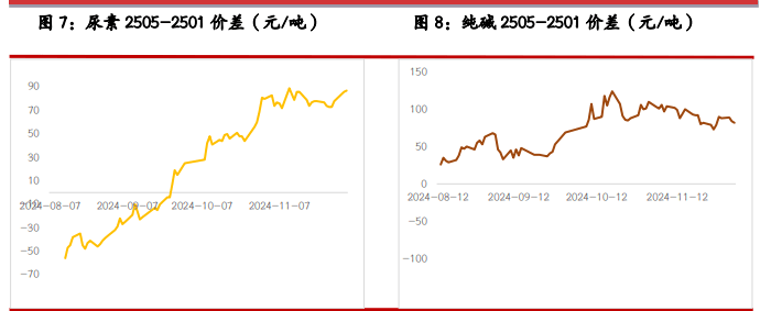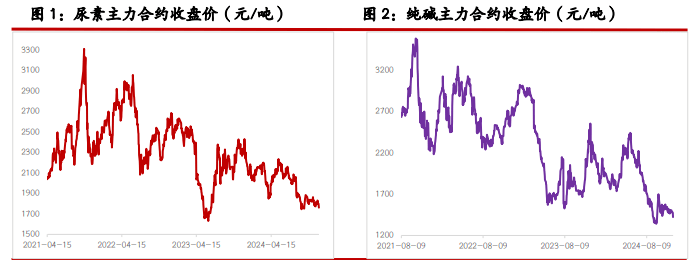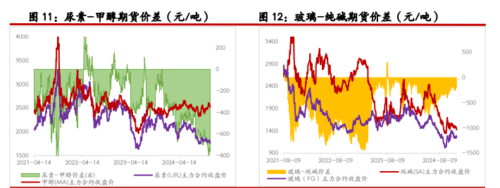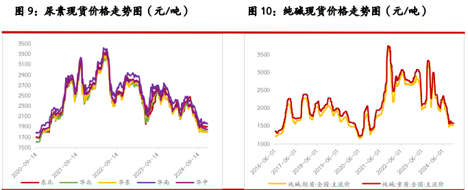 一、研究观点 【尿素】 周三尿素期货价格偏弱运行,主力合约收盘价 1761 元/吨,跌幅 1.95%。现货市场多数稳定,局部地区小幅下调 10 元/吨,山东临沂市场价格维持在 1800 元/吨附近。 基本面来看,尿素供应继续下降,行业日产量降至 18.2 万吨,后续或仍有进一步下降空间。需求跟进缓慢,中下游多以逢低少量采购为主,各地区产销率低位徘徊,对市场支撑力度有限。 本周尿素企业库存下降 1.34%,但市场交易逻辑仍在于外围市场波动、国内商品市场情绪偏弱等。另外,尿素上游相关品焦煤、下游玉米期货价格近两日下跌明显,尿素期价也受到联动影响。 整体来看,尿素日产、库存等基本面指标略有好转,但外围因素影响加大,期货盘面日内或继续以释放情绪为主,关注主力合约 1730~1750 元/吨支撑位。 【纯碱】 周三纯碱期货价格明显走弱,主力合约收盘价 1423 元/吨,跌幅 3.59%。现货市场报价稳定,沙河地区重碱送到价格本周仍维持在 1500 元/吨。贸易商环节报价继续回落 30~70 元/吨,主流地区交割库出库价格在 1400 元/吨左右。 基本面来看,纯碱供应高位徘,行业开工率昨日继续小幅提升至 87.95%,日环比提升 0.47 个百分点。需求端表现平稳,部分低价货源适量成交。西北等局部地区运输依旧受阻,区域间表现仍有分化,后期等待行业冬储进展能否给市场带来缓和。 整体来看,当前纯碱市场支撑不足,且商品市场相关品种情绪同样偏弱,预计纯碱期货价格短期延续偏弱震荡走势,关注今日库存数据、本月重要会议政策导向。 【玻璃】 周三玻璃期货价格走弱,收盘价 1249 元/吨,跌幅 2.57%。现货市场昨日小幅回落,国内均价 1367 元/吨,日环比回落 2 元/吨。个别地区产销仍维持高位,但局部地区成交略有回落,部分现货产销率降至 100%以下。供应端小幅回落,日产量降至 15.86 万吨。 整体来看,玻璃现货市场情绪略微回落,期货盘面同时受到外围因素影响,日内走势偏弱。考虑到市场对本月重要会议政策仍存预期,建议关注后续政策导向对盘面的支撑效果。另需关注玻璃库存数据、现货成交持续情况。 二、市场信息 尿素 1、郑商所数据:12 月 4 日尿素期货仓单数量 6566 张,较上一交易日-3 张,有效预报量 546 张。 2、隆众数据:12 月 4 日尿素行业日产 18.20 万吨,较上一工作日减少 0.07 万吨(修正:上一工作日 18.27 万吨),较去年同期增加 0.60 万吨;行业开工 80.51%,较去年同期 79.91%回升 0.60 个百分点。 3、12 月 4 日国内各地区小颗粒尿素现货价格(隆众;元/吨):山东 1800,持平;河南 1800,持平;河北 1820,持平;安徽 1800,-10;江苏 1820,持平;山西 1730,-10。 4、隆众数据:截至 12 月 4 日国内尿素企业库存 139 万吨,周环比-1.89 万吨,-1.34%。 纯碱 & 玻璃 1、郑商所数据:12 月 4 日纯碱期货仓单数量 6310 张,较上一交易日+545 张,有效预报量 1988 张;玻璃期货仓单数量 295 张,较上一交易日+295 张。 2、12 月 4 日纯碱主流现货价(隆众;元/吨):华北轻碱 1600~1630,重碱 1650~1750;华中轻碱 1380~1600,重碱 1500~1600;华东轻碱 1450~1600,重碱 1500~1650;华南轻碱 1650~1750,重碱 1700~1800;西南轻碱 1500~1600,重碱 1600~1700;西北轻碱 1100~1250,重碱 1100~1250。日环比均持平。 3、隆众数据:12 月 4 日纯碱行业日度开工率 87.95%,上一工作日 87.48%;日损失量 1.43 万吨,上一工作日 1.48 万吨。 4、隆众数据:12 月 4 日全国浮法玻璃均价 1367 元/吨,日环比-2 元/吨。浮法产业企业开工率 77.63%,日环比持平;日产量 15.86 万吨,日环比-0.05 万吨。 三、图表分析