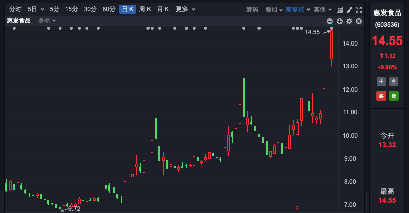 免税行业在促进消费方面占据着独特的地位,政策也在持续推动行业发展。光大证券(601788)表示,高档消费或成为消费税改革的重点方向,而免税商品具备免除关税、增值税、消费税的优势,或将承接更多的消费需求。 预制菜概念近来也频频走强,板块指数今日再度放量大涨近3%,创1年半来新高,也逼近历史最高点。双塔食品(002481)、惠发食品(603536)均连续3日涨停,海欣食品(002702)、佳隆股份(002495)、巴比食品等也强势涨停。