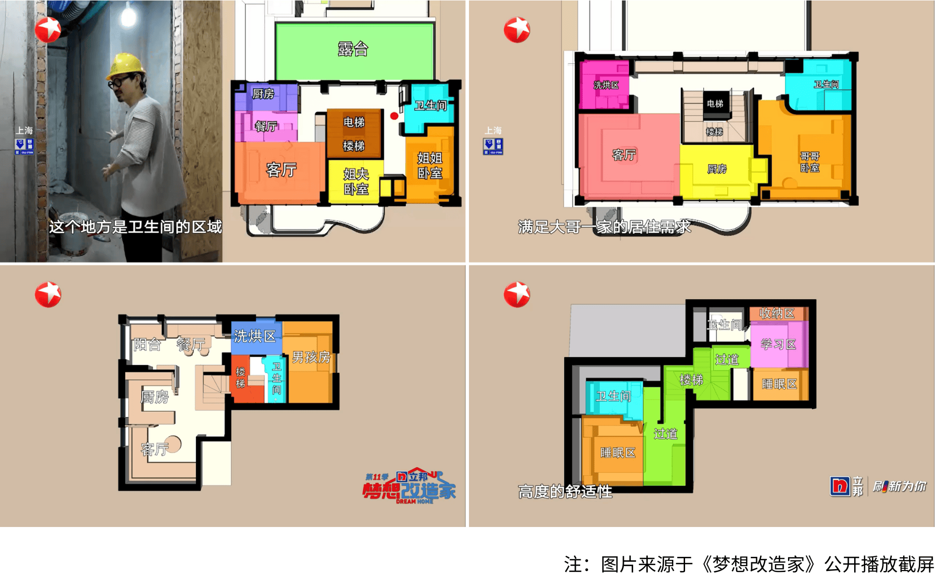 2024年末,《梦想改造家》已经快要走完它的第十一季。在节目中,从日本建筑师本间贵史,到海归建筑师王心宴,展现了无障碍、百年老房、超级迷你户型、奇葩结构等高难度的改造案例——观众大呼“还能这样改”的嗟叹之余,其实也在社交媒体中吐槽这些“典中典”的项目过于奇特,多少缺乏和城市平均生活水平间的真正关联。换句话说,好看,但启发的意义大于实际的借鉴价值。那么,对于我们普通人来讲,在房屋改造过程中具体要注意哪些关键点呢? 建筑师的“改造法”,关键词是“卫生间” 社会中大量的存量房,其实是八十年代的楼梯房,面积50-80平米不等,得房率虽很高但也存在层高低、楼板薄的硬伤问题;或是现在已经有十几二十年房龄的两房两厅一卫的商品房,因为建造理念落后,逐渐不满足当下家庭成员的舒适性要求;又或是,当年外销房里典型的“老破大”,同样面临着各种布局不合理带来的不适感。如何对这些“主力”进行改造上的建议?可能需要向建筑师取经。