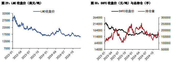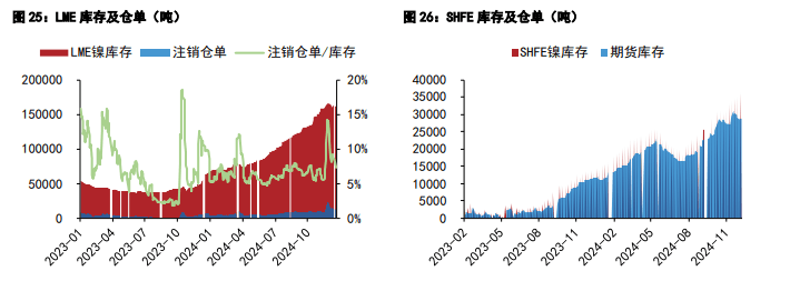 研报正文 【沪锡】 2025 年 01 月 02 日,沪锡主力合约报收 244860 元/吨,跌幅 0.81%(截止周二下午三点)。国内,上期所期货注册仓单上升 264 吨,现为 5280 吨。LME 库存上升 25 吨,现为 4800 吨。长江有色锡 1# 的平均价为 246370 元/吨。 上游云南 40%锡精矿报收 229850 元/吨。乘联会数据显示,12 月 1-22日,乘用车市场零售 169.2 万辆,同比去年 12 月同期增长 25%,较上月同期增长 14%,今年以来累计零售 2,195 万辆,同比增长 6%。乘用车新能源市场零售 81.7 万辆,同比去年 12 月同期增长 60%,较上月同期增长 4%,今年以来累计零售 1,041.3 万辆,同比增长 43%。 根据中国海关公布的数据以及安泰科折算,锡精矿进口方面,2024 年 11 月我国共进口锡精矿实物量 12136 吨,折金属量 5106.1 吨,环比小幅增长 2.2%,同比下滑 16.6%。截止 2024 年 11 月,我国累计进口锡精矿实物量 15.1 万吨,折金属量 4.8 万吨,同比下滑 5.4%。 截止 2024 年 11 月,我国共进口精锡 1.9 万吨,同比下滑 34.7%;累计出口精锡 1.5 万吨,同比增长 34.5%;累计净进口量 3488 吨。锡矿加工费再度走低,国内锡矿供应整体承压。后续预计锡价将维持震荡偏强走势,国内参考运行区间:240000-258000 元/ 吨。LME-3M 参考运行区间:28000-31000 美元/吨。 【沪镍】 2024 年 12 月 31 日,沪镍主力 2502 合约收盘跌 70 元/吨至 124750 元/吨,跌幅 0.07%。金川集团上海市场销售价格 126800 元/吨,较上一交易日下跌 700 元/吨,折算市场主流报价合约沪镍 2502 合约 10:15 盘面升贴水为+2910 元/吨。 市场方面,日内镍价震荡运行,年末结账等因素影响下,精炼镍现货成交仍暂处供需两弱状态。各品牌精炼镍现货升贴水稳中微调为主,金川现货紧缺逐渐缓解情况下,现货升水继续有明显下跌。后市看,预计镍价短期仍将维持区间震荡运行,操作上建议观望为主。