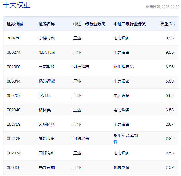 中证电池主题指数主要权重股 |