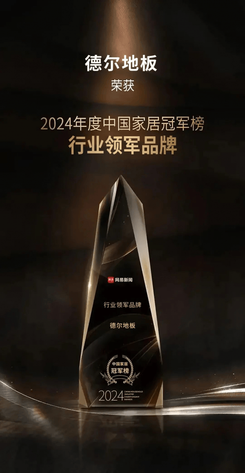 在 2025 年 2 月 10 日举行的“2024 网易中国家居冠军榜评选” 中,德尔地板从众多家居品牌中脱颖而出,荣获 “行业领军品牌” 称号。这一奖项不仅是对企业长期深耕的高度认可,更为其未来的发展注入了强大的动力与信心。2024 年,家居行业面临诸多挑战与变革,但在领军企业与杰出人物的引领下,行业持续创新与突破,勇敢开拓新机遇,书写属于自己的辉煌篇章。