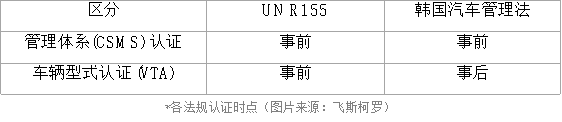 由于中国国内市场竞争日益激烈,主要整车制造商(OEM)正加速布局海外市场。其中,作为地理位置接近、消费潜力突出的邻近市场,韩国正成为中国车企关注的重要区域之一。比亚迪(002594)、小鹏、极氪等品牌正相继加速进军韩国市场,全面推进本地化运营与品牌建设。 然而,除了建立销售网络外,还有一项同样重要的考量因素——汽车网络安全法规。随着SDV(软件定义汽车)时代的到来,汽车正从单纯的交通工具,演变为“可行驶的电脑”。创新功能的迅速普及带来了更智能的出行体验,同时也让黑客攻击等网络威胁急剧上升。 为此,联合国欧洲经济委员会(UNECE)下属的汽车法规工作组(WP.29)制定了 UN R155《汽车网络安全法规》。此后,欧盟(EU)正式采纳该法规,目前在欧盟市场销售的所有车辆均需遵守相关要求。包括中国在内的多个国家,也正在以 UN R155 为基础,制定并完善各自的国家级汽车网络安全法律体系。 韩国同样参考了UN R155的内容,于今年8月起正式施行修订版《汽车管理法》。因此,对于计划进入韩国市场的整车制造商(OEM)而言,理解UN R155与韩国《汽车管理法》的差异,将有助于更有效地应对当地法规要求。 ※参考说明:UN R156(汽车软件更新法规)与韩国《汽车管理法》中关于软件更新的条款之间也存在一定差异,但本文仅聚焦于汽车网络安全相关内容。 韩国法规和UN 155的共同点:核心在于建立CSMS 两项法规的核心要求皆为建立并运行CSMS(网络安全管理体系)。OEM必须通过以下两类认证: 1. 管理体系(CSMS)认证?– 用于验证企业在车辆全生命周期——从车辆研发、生产、运营到报废——过程中,已建立并运行网络安全组织与管理流程。 2. 车辆型式认证(VTA)– 用于验证在CSMS中定义的安全措施是否在实际车辆中得到落实与实现。 这两项认证是相互关联的,没有CSMS认证,车辆型式认证无法进行。也就是说,必须同时证明组织的安全管理能力与车辆的安全实现水平,这是两项法规的共同核心要点。 韩国法规和UN 155的差异点:核心在于认证时点 如表所示,两项法规在认证取得的时点上存在显著差异。 在UN R155中,企业须在车辆上市前完成两项认证(CSMS与VTA)。而在韩国《汽车管理法》中,仅要求在销售前获得CSMS认证。至于车辆型式认证(VTA),韩国法规允许OEM在销售前通过自主测试与检验,确保符合法规要求,政府则会在销售后阶段进行不定期抽查与验证。