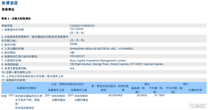 资本市场对生物医药企业的价值判断,往往藏在顶级投资机构的操作轨迹中。 11月6日与11月10日,博裕资本(Boyu Capital Investment Management Limited)接连出手,分别买入复宏汉霖262,500股及80,000股H股,两次增持后其H股好仓比例由5.84%跃升至7%。