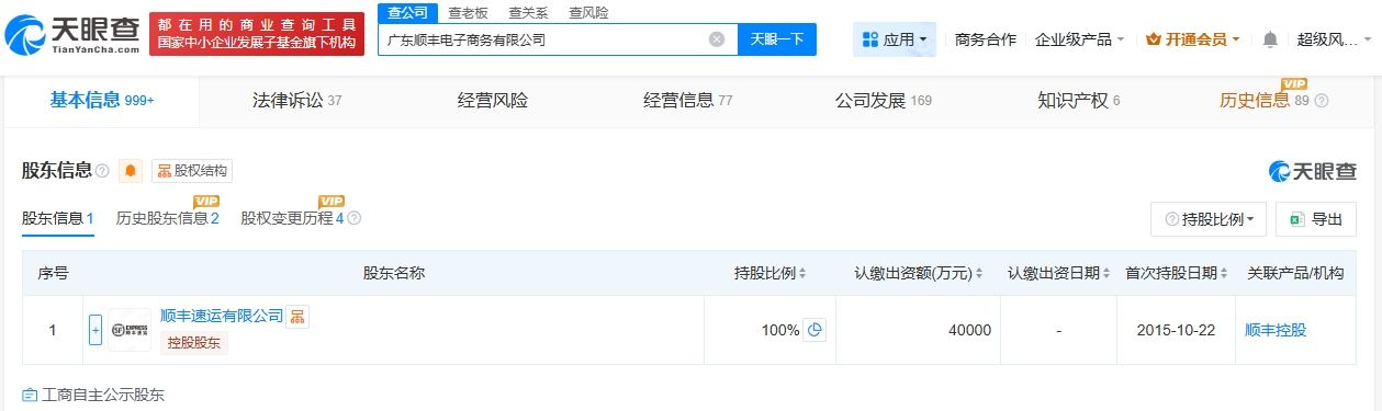 天眼查App显示,近日,广东顺丰电子商务有限公司发生工商变更,注册资本由1000万人民币增至4亿人民币,增幅3900%。