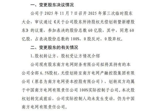 近日,再有保险公司股东无偿划转股权。 鼎和财产保险股份有限公司(下称“鼎和财险”)公告,公司现有股东南方电网财务有限公司拟将持有的公司全部6.5%股权,无偿划转至南方电网产融控股集团有限公司(原名为南方电网资本控股有限公司),划转双方均属于中国南方电网有限责任公司(下称“南方电网”)100%实际控制子公司。 本次股权划转完成前后,公司实际控制人均未发生变动,仍为南方电网。