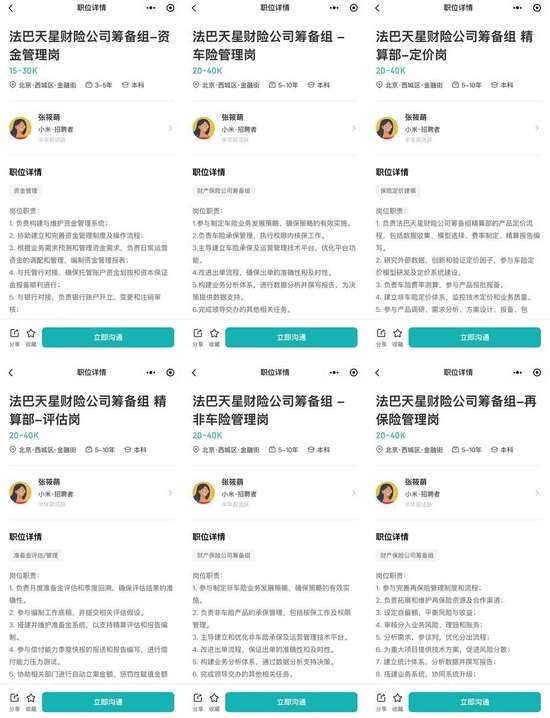 法巴保险集团,是法国巴黎银行集团成员之一,在全球超30个国家设有各类分支机构。法国巴黎保险于2003年在上海设立人寿保险代表处,并在2005年于北京设立非寿险业务代表处;2014年,法国巴黎保险同北京银行合资共同经营中荷人寿保险公司,进一步布局中国保险市场。至参股法巴天星保险,法国巴黎银行已经在中国市场实现了财寿险“两条腿”走路的布局。 大众汽车金服是德国大众汽车集团旗下的全资子公司,是欧洲的汽车金融服务提供商,主要业务遍布欧洲、美洲和亚太地区的40个国家和地区,业务领域包括为个人和企业、经销商提供汽车贷款、融资贷款、汽车租赁、车辆保险和车队管理服务等方面,其目前在中国全资持股了大众汽车金融(中国)有限公司。 而另一家备受市场关注的股东——四川银米科技则是小米集团成员。天眼查信息显示,四川银米科技成立于2005年,注册资本为20亿元,由北京小米电子软件技术有限公司100%控股,而雷军持有后者90%的股份。 法巴天星保险的核心高管也已敲定,监管核准黄?葹(OOI See See)董事长的任职资格,其为外方股东背景;核准朱仁栋总经理的任职资格,朱仁栋则是中方股东派驻。 黄?葹生于1968年,毕业于美国爱荷华大学,拥有精算学士学位。职业履历聚焦保险领域,早期任职中意人寿保险有限公司,负责多渠道营销;2011年起转向跨国保险集团,先任意大利忠意集团亚洲区办事处(香港)亚洲区分销部负责人,后加入法巴保险集团亚洲区总部(香港),从亚洲区副总裁逐步升任至亚洲区总裁;目前担任法国巴黎保险集团中国区非执行主席、中荷人寿保险有限公司副董事长。 朱仁栋于1973年出生,持有中国精算师和北美准精算师资格,有多年的财产险管理和产品精算经验。2005年6月,朱仁栋加盟阳光财险,历任精算部副总经理、总经理、财务负责人、精算责任人等职务。今年年初,其卸任阳光财险副总经理、总精算师职务。 值得关注的是,记者获悉,筹建初期,法巴天星保险筹备组组长为张国威,拟任总经理,其曾任现代财险副总经理、渤海财险副总经理、安邦人寿副总裁等职务,但从最新动态来看,并未出任预期职务。 记者注意到,法巴天星保险的其他业务岗位也在陆续补齐,招聘网站信息显示,小米集团此前的招聘职位中,包含多个法巴天星财险公司筹备组岗位,覆盖资金管理、车险管理、精算定价/评估、非车险管理、再保险管理等方向。