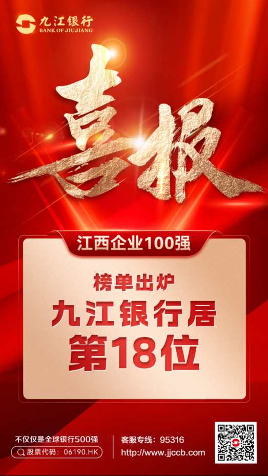 富拓外汇平台:九江银行入围“2025江西企业100强”,居第18位
