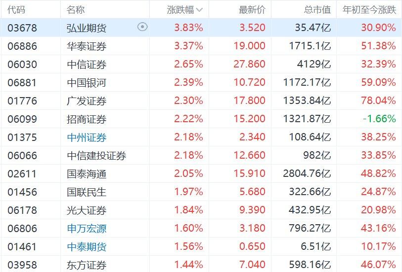富拓外汇平台:港股异动丨行业迎重磅利好!中资券商股集体高开,华泰证券涨超3%
