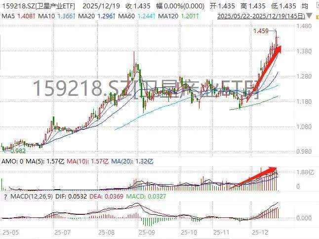 2025年12月18日,卫星产业板块热度不减,核心投资工具——卫星产业ETF(159218)盘中价格再创上市以来历史新高。市场的热情不仅体现在价格上,更反映在汹涌的成交中:该ETF近5日日均成交额已攀升至1.9亿元,交投势能呈现逐级放大态势。资金正以前所未有的关注度,拥抱卫星产业从“太空通信”向 “太空AI基础设施” 的战略性跃迁。