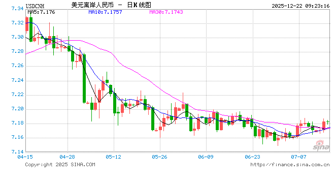 12月22日,人民币兑美元中间价报7.0572,下调22点。