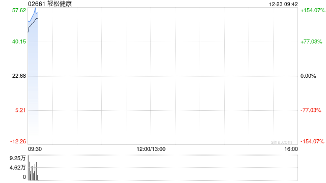 数字健康服务提供商轻松健康(股票代码:02661.HK)今日登陆港交所,开盘报50港元,较每股22.68港元的发行价大幅高开120.46%。不计手续费,每手200股可赚5464港元。截止发稿,轻松健康涨超135%,总市值超110亿港元。