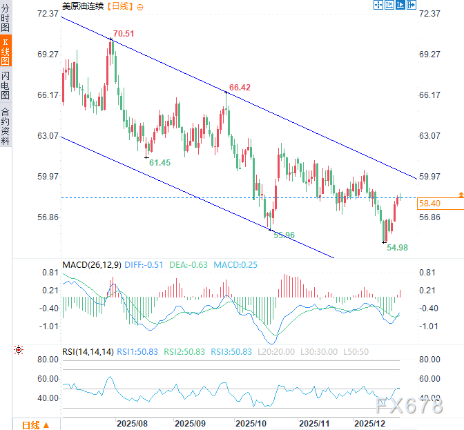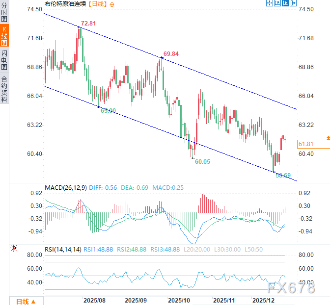 从技术分析角度来看布伦特原油与西德克萨斯中质原油自2025年初以来,价格一直处于稳定的下降通道中,这确认了结构性看跌趋势而非暂时性回调每次反弹都在更低的高点失败,而支撑位不断失守,这强化了卖方仍占据主导地位的看法。
