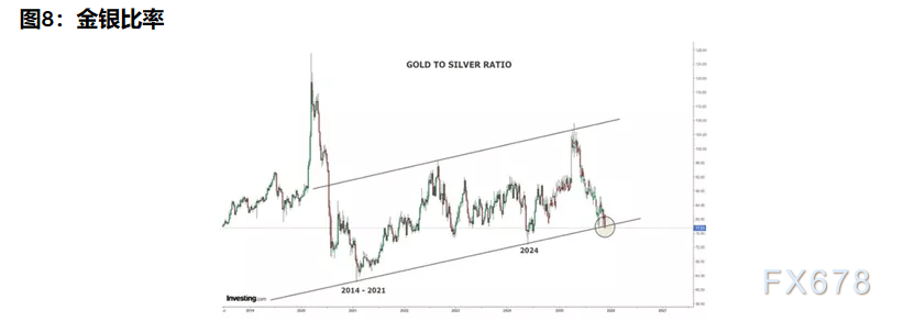 金银价格比已回落至一条重要的长期趋势线支撑位该位置历来是白银开始大幅跑赢黄金的启动区域。
