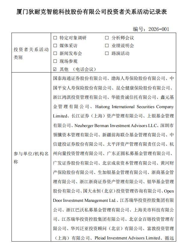 1月5日调研狄耐克的部分机构 而在1月4日,同样有大量机构通过电话会调研了京北方,该公司有数字货币相关业务,此次机构调研的话题聚焦在数字人民币上。此外,数字人民币概念股天阳科技在1月4日当天也吸引了大量机构线上调研。 另据记者进一步观察,从近期各券商调研路线的选择来看,商业航天、脑机接口等热点主题的相关上市公司是热门方向。另外,开年表现不错的化工、有色等传统周期类上市公司也是券商组织调研的重点方向。 例如,1月7日国金证券将在上海举办商业航天专题会议,多家相关行业上市公司将参与交流;1月15日,东吴证券也将在上海举办商业航天专题研讨会;1月6日,国联民生将在北京举办2026年度周期展望策略会,将有几十家来自有色、化工等行业的上市公司参会。据了解,由于国金证券商业航天专题会议报名火爆,主办方日前还临时将会议举办地点调整到了更大的场地。