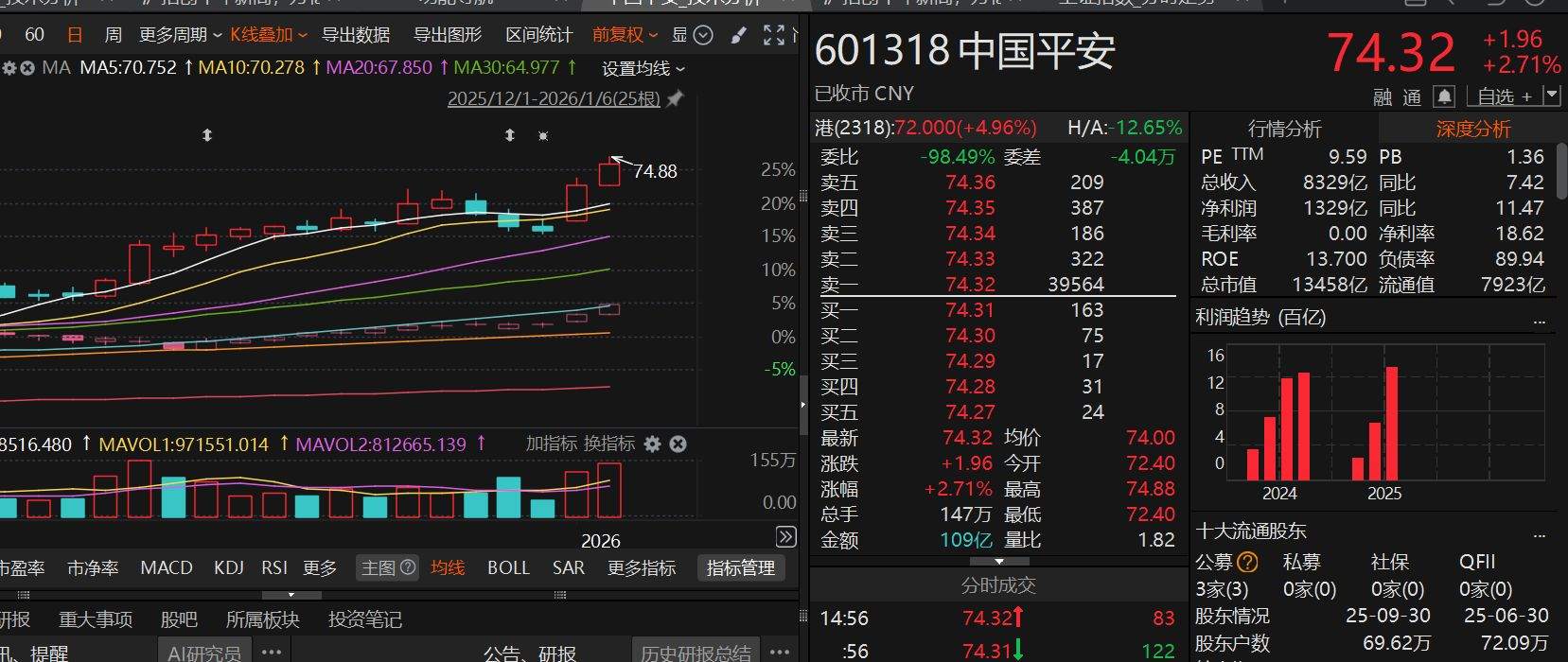 图:中国平安日K线