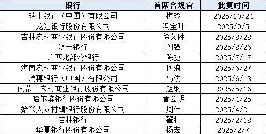 银行领域作为金融体系的“主力军”,呈现“大中小机构齐头并进”的落地态势,杨宏、翟壮、周伟等12位首席合规官走马上任。例如,杨宏获批担任华夏银行(600015)首席合规官,成为《办法》出台后银行领域首位获批的首席合规官;始兴大众村镇银行周伟则是新规发布以来首位获批的村镇银行首席合规官。 此外,内蒙古农商银行、吉林农商银行在开业初期便同步获批首席合规官任职资格,将合规管理嵌入机构运营“起点”,赵纲、徐久胜分别出任这两家机构的合规负责人。