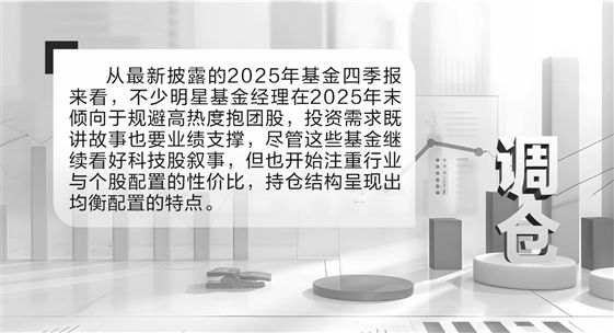 证券时报记者 安仲文 随着2025年四季报的披露,多位知名基金经理的调仓路径浮出水面。 证券时报记者注意到,不少明星基金经理在2025年末倾向于规避高热度抱团股,投资需求既讲故事也要业绩支撑,尽管这些基金继续看好科技股叙事,但也开始注重行业与个股配置的性价比,持仓结构呈现出均衡配置的特点。 最新披露的2025年四季报曝光了一批知名基金经理的持仓新动向。 证券时报记者注意到,鹏华基金权益投资三部总经理闫思倩在管理次新基金鹏华制造升级时,更加注重个股的业绩确定性。该基金成立于2025年10月中旬,建仓期选择切入“老树开新花”的行业,那些传统业务即可贡献丰厚利润的汽车零部件公司成为投资重点,如宁波华翔(002048)、震裕科技等,这些标的也受益于人形机器人(300024)产业链的延伸。这一策略与其管理的其他老基金形成鲜明差异,后者更聚焦AI、半导体等高景气赛道。这种差异化配置,既考虑了次新基金对净值波动的敏感性,也体现既要科技新故事,又要业绩支撑的优选逻辑。 同样采取优选配置策略的还有平安基金权益投资总监神爱前。他在去年末并未押注热度已较高的半导体,而是通过自下而上的个股精选,构建多元组合。其管理的平安策略先锋基金重仓股涵盖电子材料、储能、电解铝、游戏机等多个领域,有效规避单一行业波动风险。 长城基金国际业务部副总经理、基金经理曲少杰则通过赛道细分挖掘超额收益。他管理的长城全球新能源汽车基金在2025年末减持港股仓位,将重心转向具有全球竞争力的科技龙头,包括谷歌、台积电、特斯拉等核心企业。在新能源汽车赛道,曲少杰摒弃了竞争激烈、价格下行压力较大的整车环节,转而捕捉“卖铲子”的上游投资机会,其前十大重仓股中有9只聚焦汽车电子与汽车半导体业务,精准把握了行业中需求旺盛、议价能力强的核心环节。这一策略既规避了同质化竞争的红海,又锁定了产业链高价值环节的成长红利。 尽管配置策略各异,但多位基金经理对科技主线的长期价值达成共识。AI、人形机器人、智能驾驶等方向被视为未来几年的核心增长极。 闫思倩判断,当前正处于科技爆发的奇点时刻,AI智能有望实现超越人类的认知与执行能力,机器人则将完成各类精密操作,推动生产力迈上新台阶。在这一趋势下,人口红利的重要性逐渐下降,资源与能源将成为终极竞争优势,而中国在科技、能源方向的领先优势有望持续强化。她明确表示,将持续看好AI相关、机器人、无人驾驶等科技成长方向,以及新能源与资源板块,其中2026年有望成为机器人场景落地、产品成熟与终端放量的关键年份,其应用将逐步渗透至工厂、办公、消费、家庭等多元场景。 曲少杰则认为,智能驾驶、机器人、AI芯片等赛道具有高度产业关联性,智能驾驶产业链龙头企业往往同时具备人工智能与机器人领域的核心竞争力,将长期受益于科技发展红利。当前美国正处于科技创新强周期,大模型、智能机器人、智能驾驶等技术的应用场景持续拓展,带动GPU、ASIC等高性能计算芯片的算力需求爆发,为相关科技龙头企业带来持续增长动力。 前海开源沪港深乐享生活基金经理魏淳聚焦AI基础设施的细分机会,她认为光通信和液冷领域具备较高的潜在超额回报,随着Scale-up网络从柜内互联向跨机柜互联拓展,铜传输的距离限制将推动光通信技术的广泛应用,NPO/CPO等形式有望在2026年实现规模化落地。由于Scale-up网络带宽数倍于Scale-out网络,这一技术趋势将显著提升光通信在AI基础设施投资中的占比,推动行业盈利预期与估值水平双升,而1.6T光传输与CPO技术的协同突破,将进一步筑牢AI算力的底层支撑。 |