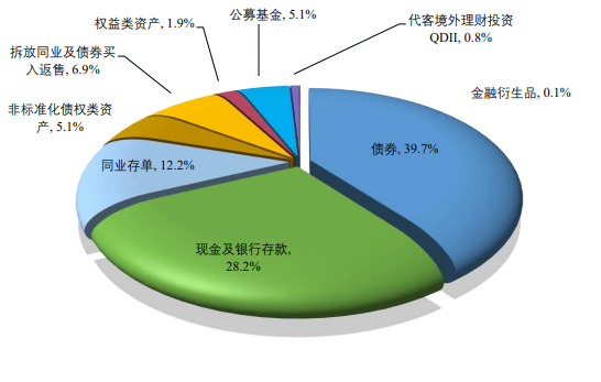 (全市场新发封闭式产品期限情况,资料来源:银行业理财登记托管中心) 从理财产品资产配置情况来看,理财产品资产配置仍以固收类为主,投向债券类、非标准化债权类资产、权益类资产余额分别为 18.52 万亿元、1.82万亿元、0.66 万亿元,分别占总投资资产的 51.93%、5.10%、1.85%。