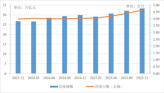 近日,银行业理财登记托管中心发布《中国银行业理财市场年度报告(2025年)》(以下简称“《报告》”),对2025年银行业理财市场情况进行统计分析。《报告》显示,截至2025年末,银行理财市场存续规模33.29万亿元,较年初增长11.15%,全年累计新发理财产品3.34万只,募集资金76.33万亿元。 此外,理财投资者数量维持增长态势。截至2025年末,持有理财产品的投资者数量达1.43亿个,较年初增长14.37%。其中,个人投资者数量较年初新增1769万个,机构投资者数量较年初新增31万个。 收益方面,2025年理财产品整体收益稳健,累计为投资者创造收益7303亿元,较去年增长2.87%。全年理财产品平均收益率为1.98%,较2024年平均收益率下降0.67个百分点。 银行理财市场存续规模突破33万亿元, 公募基金配置占比提升 《报告》显示,2025 年,全国共有136家银行机构和32家理财公司累计新发理财产品 3.34万只,累计募集资金76.33万亿元。 截至2025年末,全国共有159家银行机构和32家理财公司有存续的理财产品,共存续产品4.63万只,较年初增加14.89%;存续规模33.29万亿元,较年初增加11.15%。
